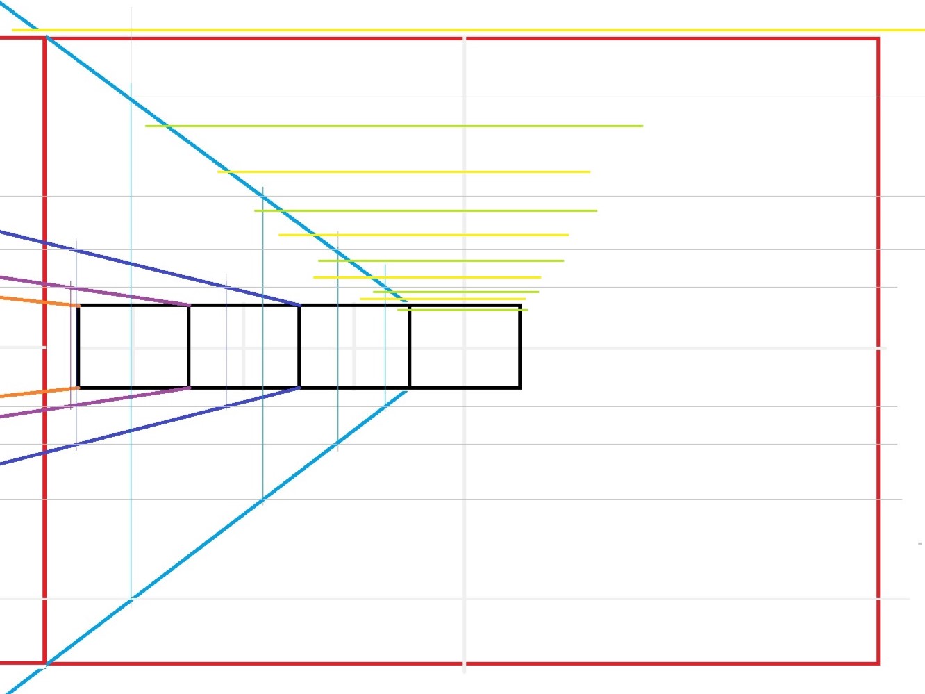 GameMaker Studio 2 has a built-in function that accepts a sprite and four (x, y) coordinates as parameters - this function will then draw the sprite on screen, with the sprite's corners being placed at the provided coordinates. When rendering the dungeon, I iterate through the tiles that are in the player's view, and check to see what location they are in with respect to the player (transforming from world coords to local coords). Then, depending on where these tiles are located, they are drawn at set coordinates defined by the top image above. For the turning animation, there is only one in between frame, and the set coordinates for that are shown in the middle image.