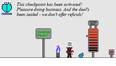 I immediately began brainstorming ideas, and came up with Repentance. You play as a soul with a variety of abilities who must escape Heck with the goal of being reincarnated. I originally planned for the game to have nine levels (themed around the nine layers of Hell), but I only had time to implement three. The main gimmick of the game revolves around the checkpoint system; in order to activate checkpoints between the levels, you must make a deal with the devil, and give up one of your abilities permanently. You can choose to give up your ability to jump, run, shoot projectiles, and more... or, you can risk keeping your abilities, but returning to the beginning of the game should you perish. It was challenging to design levels that could be completed no matter what abilities you lost, but it was a satisfying problem to solve. I think that mechanic was a pretty awesome way to implement the sacrifice theme, successfully tying it into both the narrative and the gameplay.